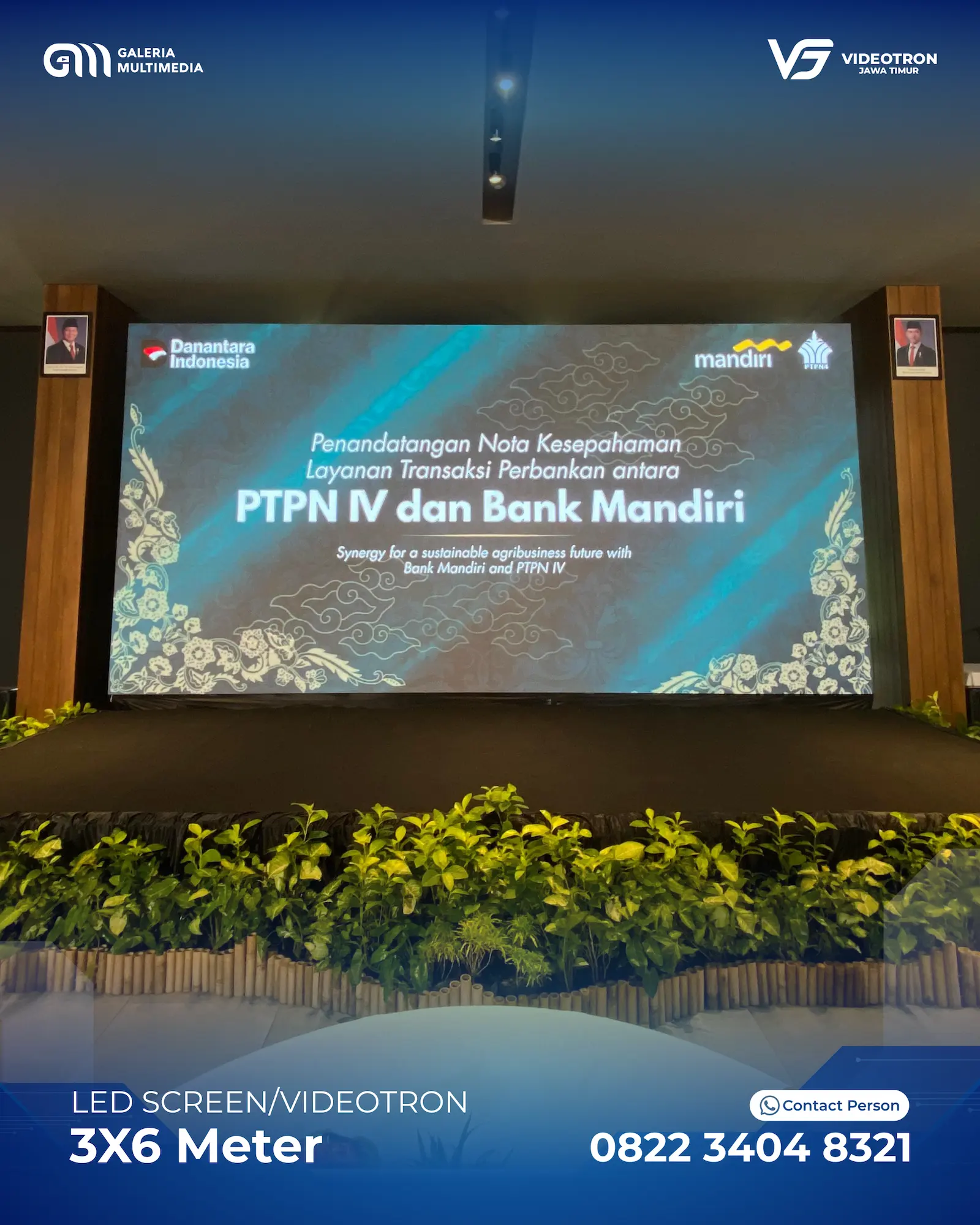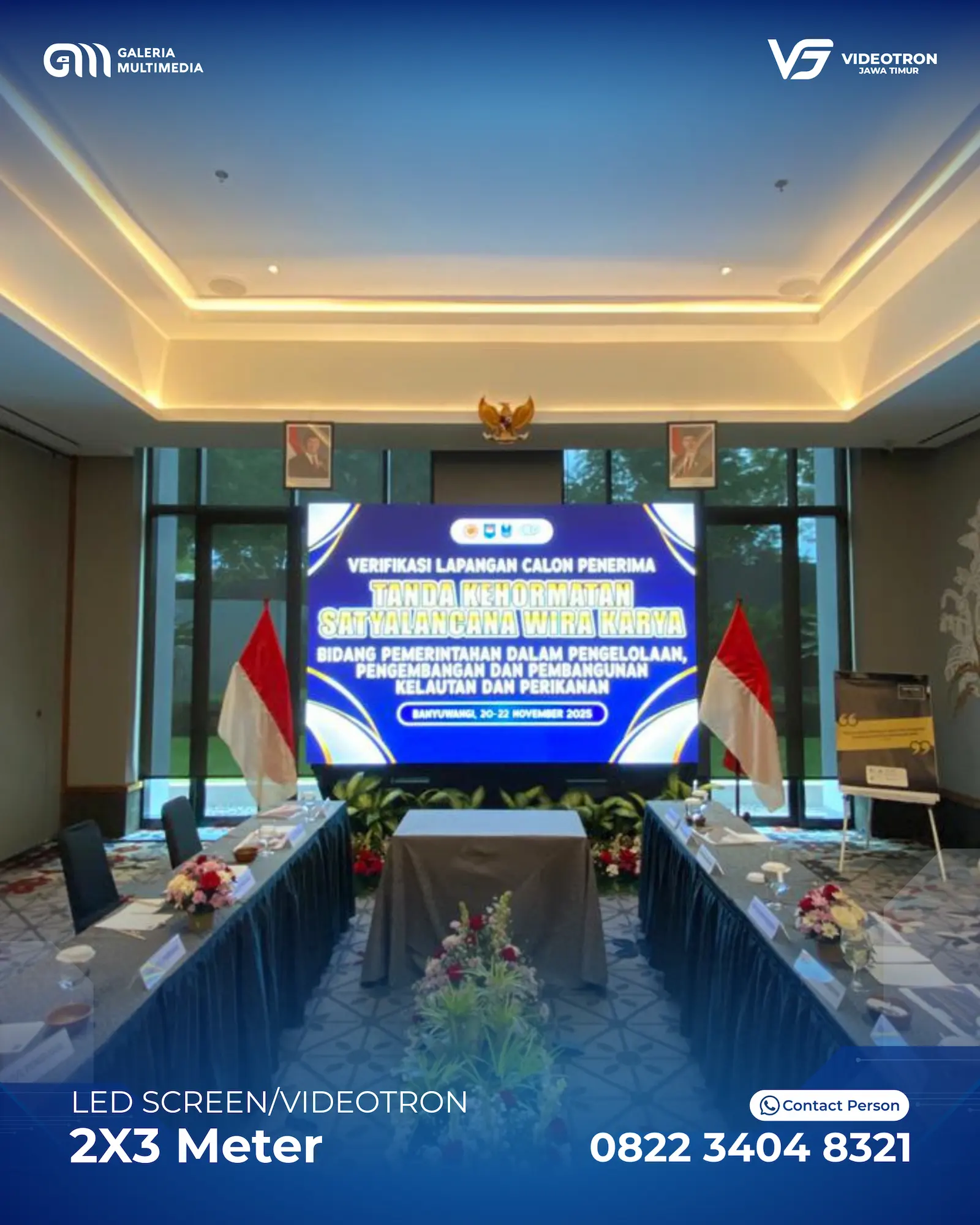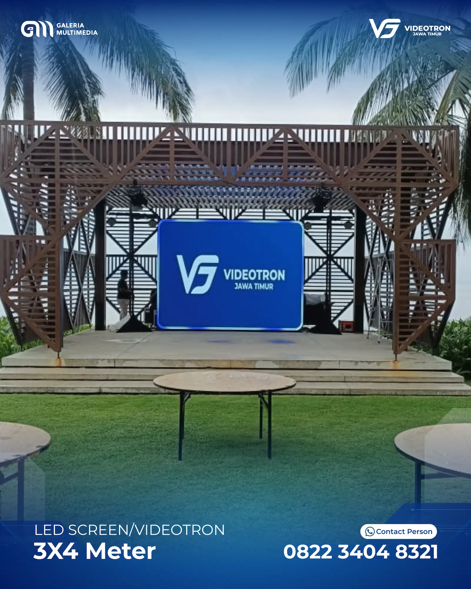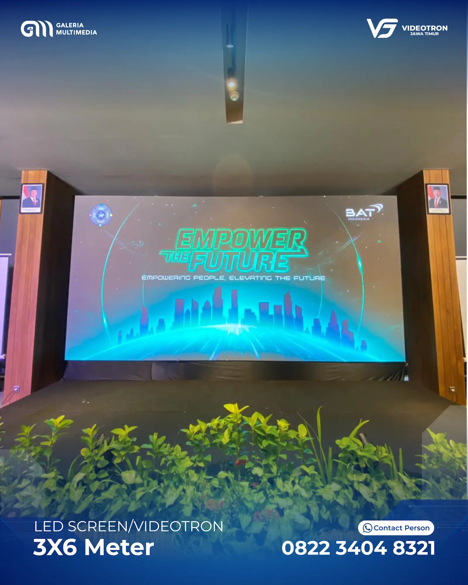Dengan berbagai pilihan ukuran dan layout Videotron, sehingga memberikan anda kebebasan untuk menyesuaikan dengan acara. Mulai dari standing videotron di tengah panggung hingga hanging videotron di bagian kanan dan kiri panggung utama